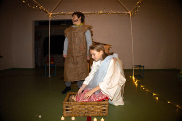 Een groep leerlingen die dit leuk vindt geeft zich op als acteur. Podiumbeesten verzorgt het script voor een klassiek kerstverhaal met een twist en begeleidt de repetities. Het publiek, een reisgezelschap, reist langs de verschillende scènes, als een reis door de school. Op zoek naar Bethlehem. Jozef en Maria in de speelzaal, koning Herodes in de bovenbouwgangen en de herdertjes ‘s nachts rondom het kampvuur, in het kleuterlokaal. Er is van alles mogelijk.