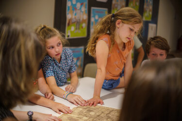 In de Expo van het Archief zijn de tentoonstellingen gebaseerd op wat onze archivarissen gevonden hebben in de archieven. Er is dus van alles te zien en te beleven over het verleden van Utrecht. Tijdens het tweede deel van de les sturen we de jonge onderzoekers onze Expo-zaal ‘Utrecht begint hier!’ in. In deze zaal gaan zij onderzoek doen naar het algemene verleden van Utrecht. Wat waren de gilden eigenlijk? Hoe zijn de werfkelders ontstaan? Hoe zijn de spoorwegen aangelegd? Waarom was de eerste file ooit in Nederland in Utrecht? Welke feesten werden er gevierd in Utrecht? En welke bedrijven of wat voor soort werk was nou echt Utrechts? Terwijl de leerlingen de antwoorden op deze vragen tegenkomen, leren zij tegelijkertijd hoe je een tentoonstelling op basis van archiefbronnen vorm zou kunnen geven.