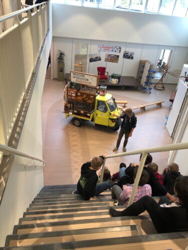 Met de Speelklok Roadshow wordt Museum Speelklok naar jouw school gebracht! Tijdens het bezoek van de Roadshow aan de school worden de leerlingen begeleid door twee medewerkers vanuit het museum: “De Roadies.” De klas wordt verdeeld in 3 groepen om na elkaar de Roadshow te bezoeken. Een Roadie is opgeleid voor het niveau van de klas en past de vorm van het verhaal op hen aan. Samen gaan de leerlingen op ontdekkingstocht om meer te leren over zelfspelende instrumenten. De Roadshow bevat een interactieve speurtocht. De kinderen gaan zelf aan de slag door op onderzoek te gaan en te ervaren door te doen. In de klas vindt een interactieve les plaats die verdiepend is op de Roadshow en Museum Speelklok. Hierin komen de thema’s muziek, geschiedenis, cultureel erfgoed en techniek aan bod. Na 20 minuten wisselen de groepjes van activiteit.