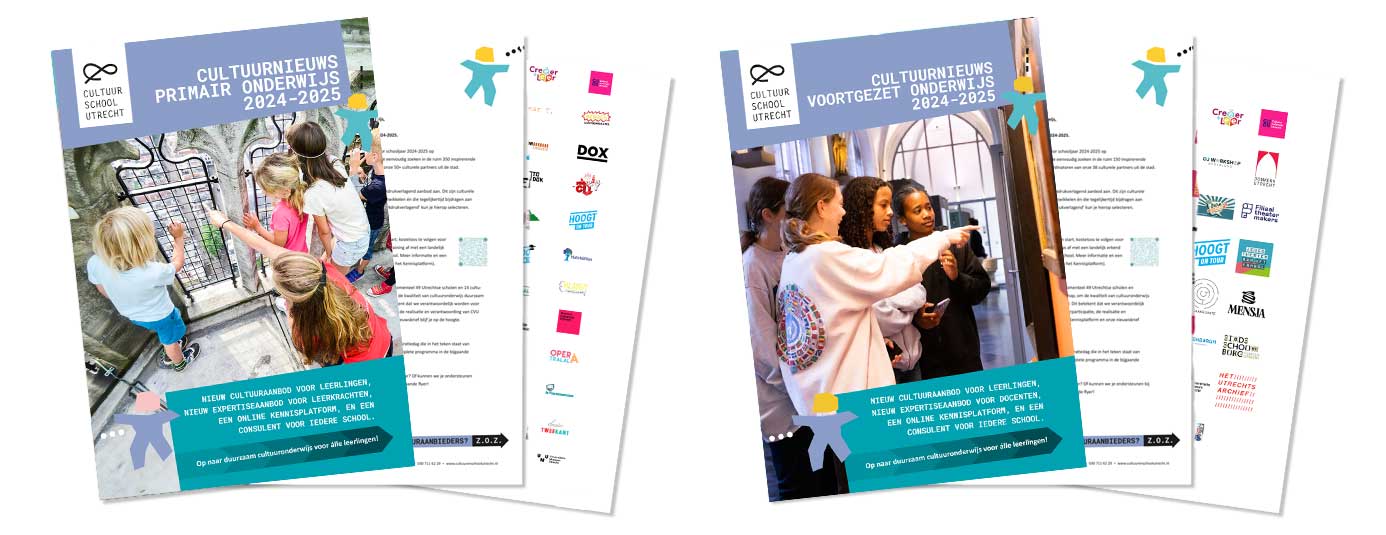 Naast een PO- of VO-poster hebben alle cultuurcoördinatoren van onze consulenten een folder gekregen met meer informatie over ons aanbod voor schooljaar 2024-2025: